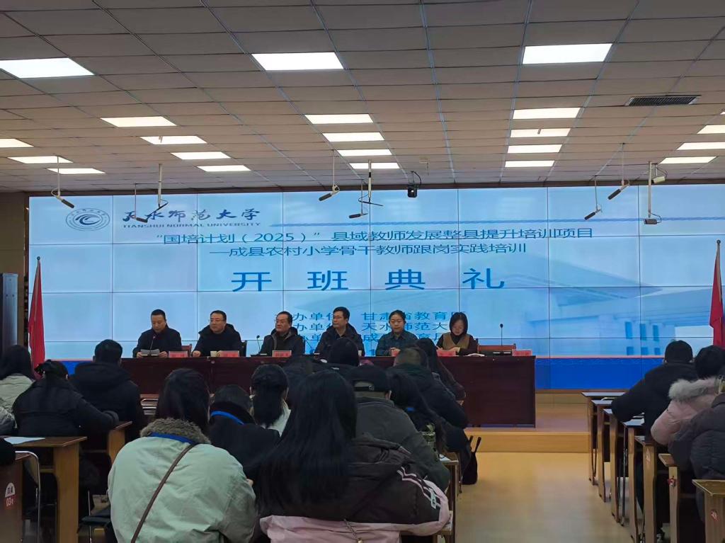 12月7日上午,由我校承办的“国培计划(2025)”县域教师发展整县提升培训项目——成县农村小学骨干教师跟岗实践培训开班仪式在天水市建设路第二小学进行,来自成县的100名农村小学骨干教师参加了此次培训。天水师范大学教师教育学院院长吴彦文、天水师范大学职业培训学院副院长胡平、天水市建设路第二小学党总支书记赵鹏飞、校长韩慈娟等出席了开班仪式。
